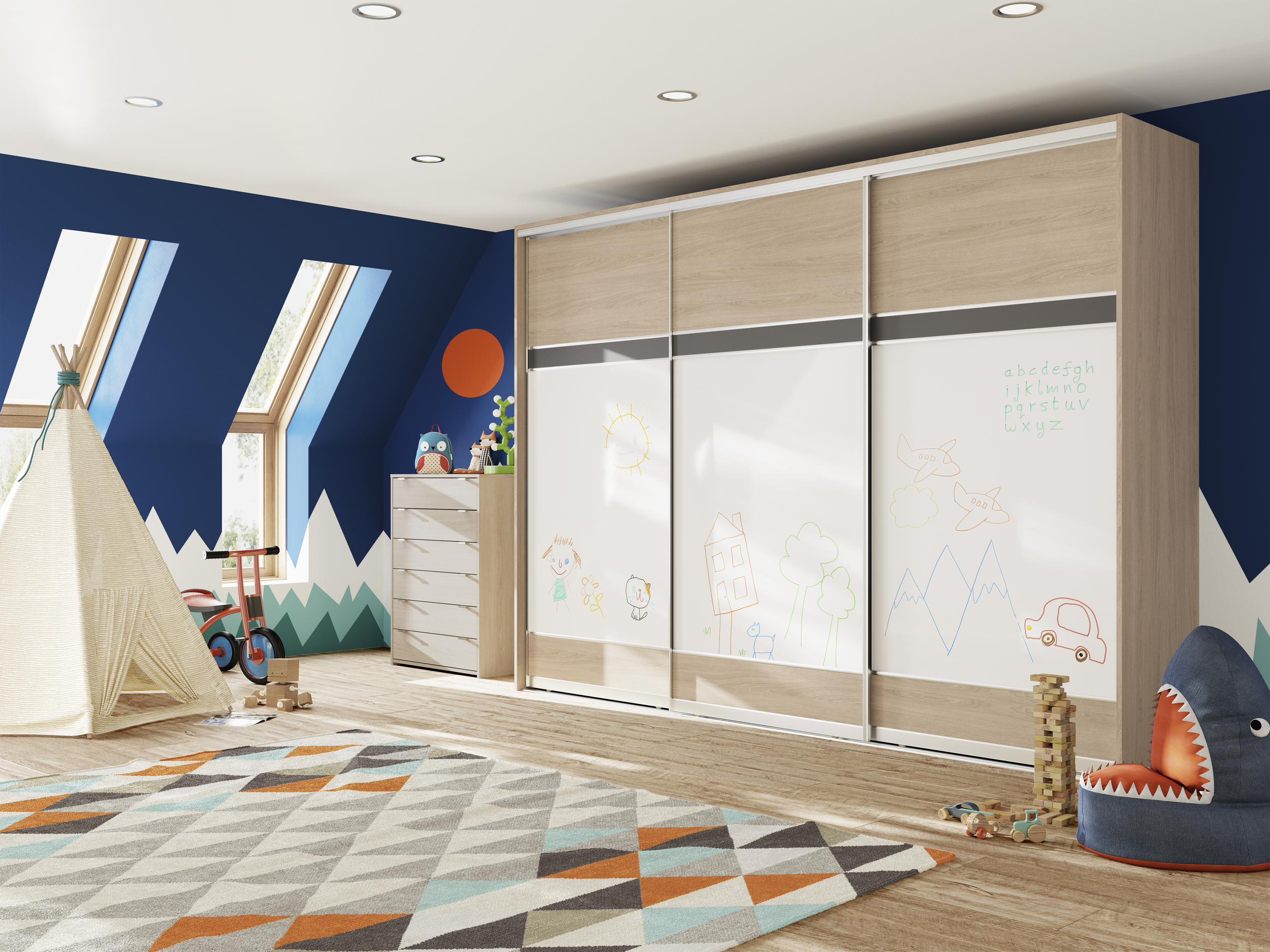 Volante provides a beautiful selection of fitted sliding bedroom wardrobes, in a range of colours and finishes including glass, mirror, pinboard, suede, unicolour and woodgrain. This made-to-measure range is an exciting way to utilise space and create a truly beautiful living space.